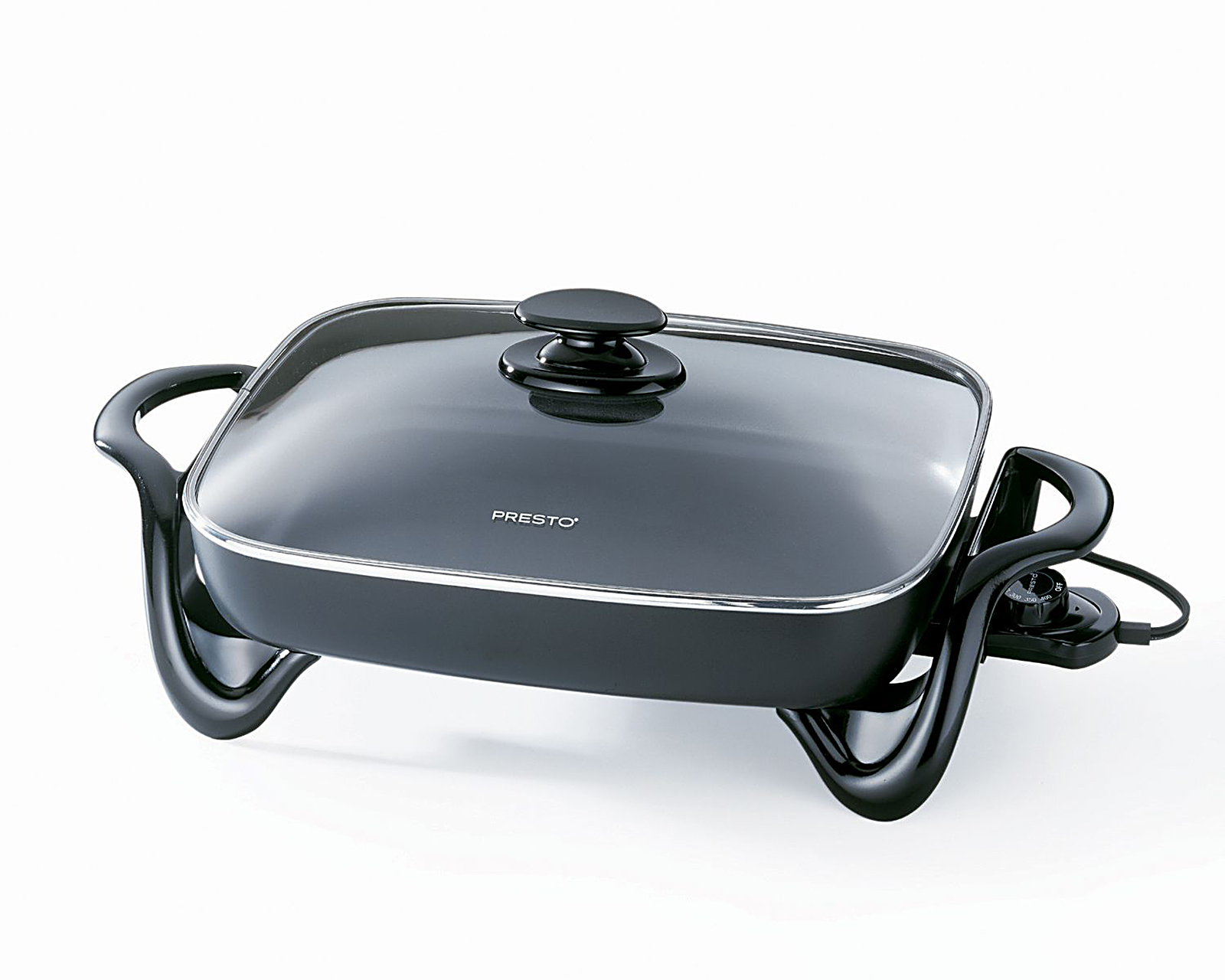 Turn Meals Into Feasts with the Presto 16 Electric Skillet Use your counterspace productively. The Presto 16 inch electric skillet has you cooking and serving conveniently right on your countertop without making a mess. Since it s electric, all you do is add the ingredients, set the temperature and take pleasure in not having to sweat over the prep work as the versatile skillet roasts, fries, grills, stews, bakes and cooks for you. Master heat control maintains accurate cooking temperatures automatically with no hot spots so getting perfectly cooked casseroles and chicken wings isn't a stroke of luck. The skillet's power and versatility will have you ruling the kitchen. Its generous 16 inch base has high walls for extra cooking and serving capacity as well as preventing food from spilling over while cooking. The sturdy tempered glass lid lets you keep an eye on what s cooking. It conveniently doubles as a buffet server, keeping food warm as you entertain guests and complementing the look of your serving table with its sleek style. Perfect choice for breakfast, lunch, dinner and entertainment the Presto 16 inch electric skillet has your family and friends feasting on perfectly cooked meals every time.